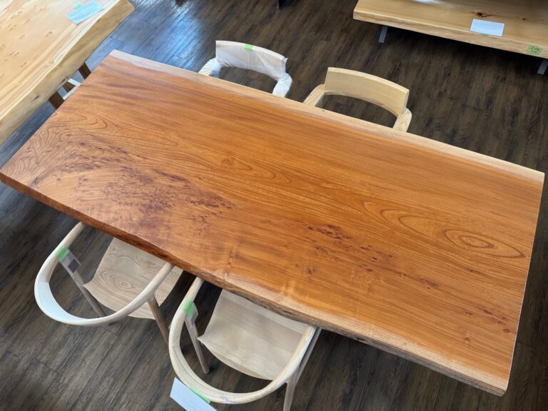 栃の木は捻じれながら育つ性質があるため、複雑な形や木の動きにより縮杢が生まれることがあり、その杢目に人気があります。トチの木は比較的軽く加工しやすい材木のため、テーブルや建築材・楽器など幅広い用途に用いられています。栃の木は模様により価値も大きく変わります。販売中
