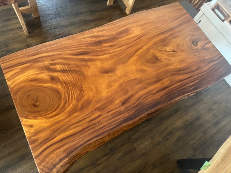 大人気のモンキーポッドの一枚板。 モンキーポッドの木目と耳のコントラストが特徴的です。販売中